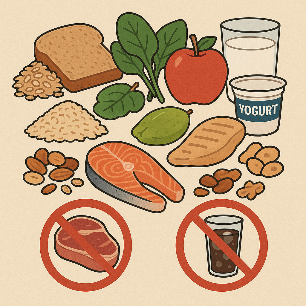 - 🌾 통곡물 섭취: 현미, 통밀빵, 귀리 등