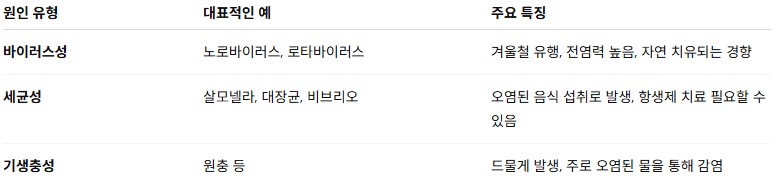 📊 장염의 주요 원인과 특징